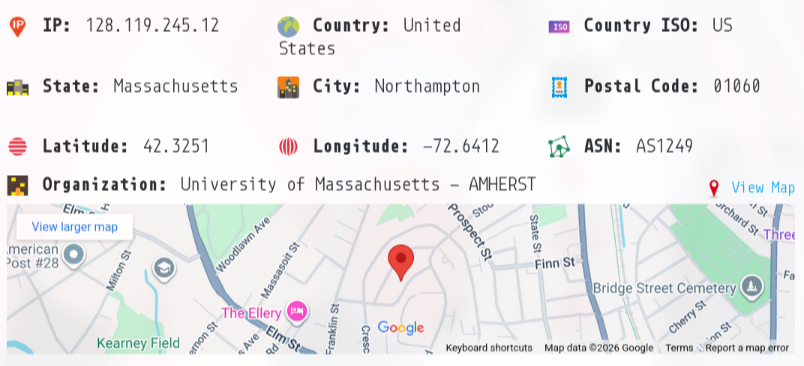 which as we can see maps to the University of Massachusetts